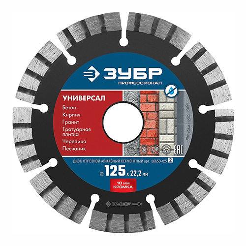 Алмазный отрезной диск ЗУБР Профессионал Универсал 125 мм, по бетону, кирпичу, граниту 36650-125_z02