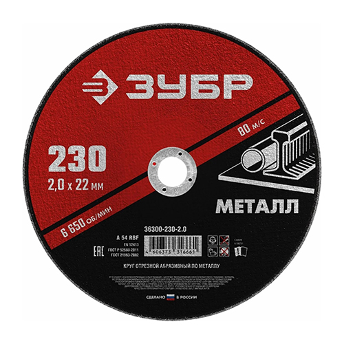 Круг отрезной абразивный по металлу 230х2 мм ЗУБР МАСТЕР