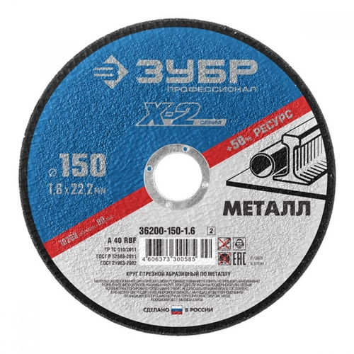 Круг отрезной "X-2" по металлу, 150х1,6х22,23мм, ЗУБР