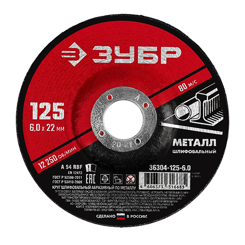 Круг шлифовальный абразивный по металлу 125x6 мм ЗУБР Мастер