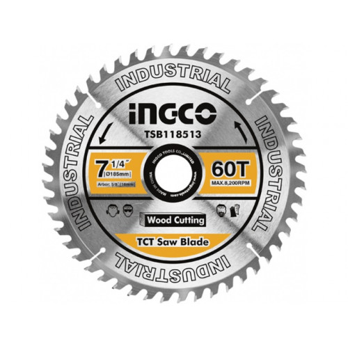 Пильный диск INGCO TSB118513 предназначен для резки дерева с помощью дисковой пилы.
