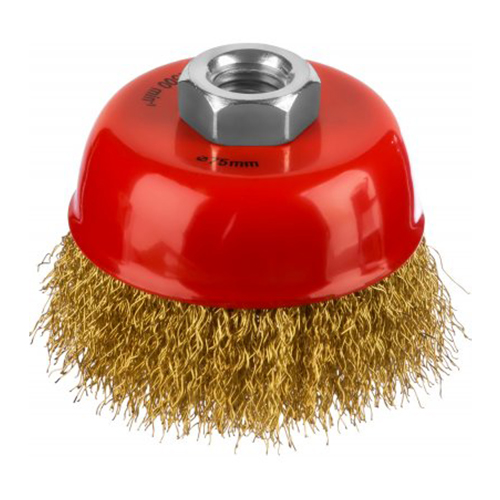 Щетка чашечная для УШМ, витая стальная латунированная проволока 0,3 мм, d=75 мм, MIRAX 35142-075