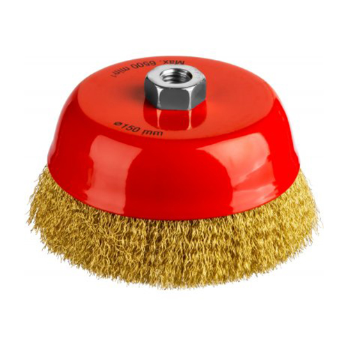 Щетка чашечная для УШМ, витая стальная латунированная проволока 0,3 мм, d=150 мм, MIRAX 35142-150