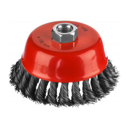 Щетка-крацовка чашечная для УШМ, жгутированная стальная проволока 0,5 мм, d=100 мм, MIRAX 35104-100