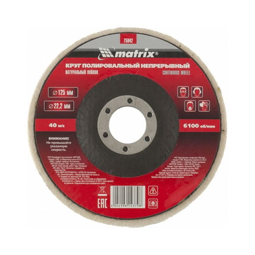 Круг полировальный непрерывный MATRIX 75942 (из натурального войлока, 125 х 22,2 мм)