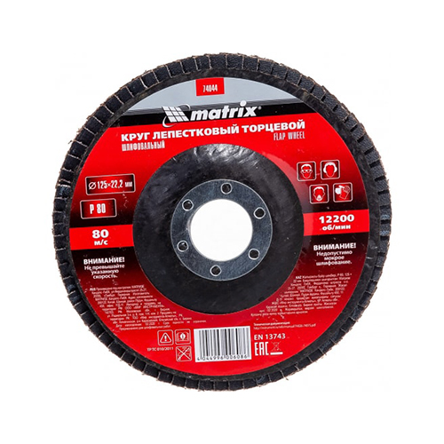 Круг лепестковый торцевой MATRIX 74044 (125 х 22,2 мм, P80, прямой, универсальный)