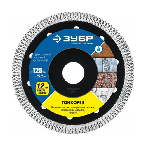 ТОНКОРЕЗ 125 мм, ультратонкий алмазный диск по керамограниту, ЗУБР Профессионал 36659-125_z01