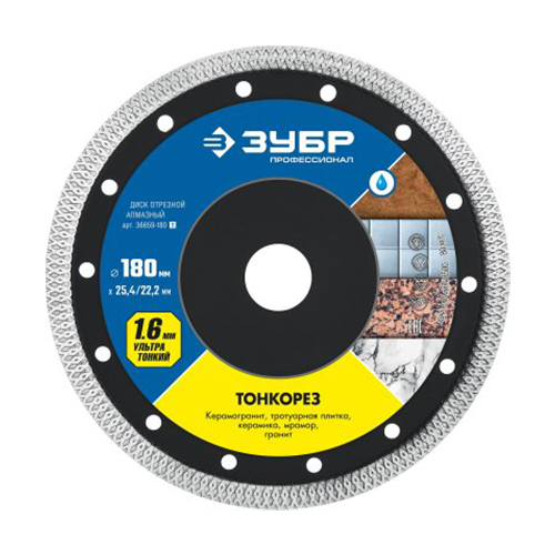 ТОНКОРЕЗ 180 мм, ультратонкий алмазный диск по керамограниту, ЗУБР Профессионал