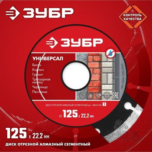 УНИВЕРСАЛ 125 мм, диск алмазный отрезной сегментный по бетону, кирпичу, камню, ЗУБР