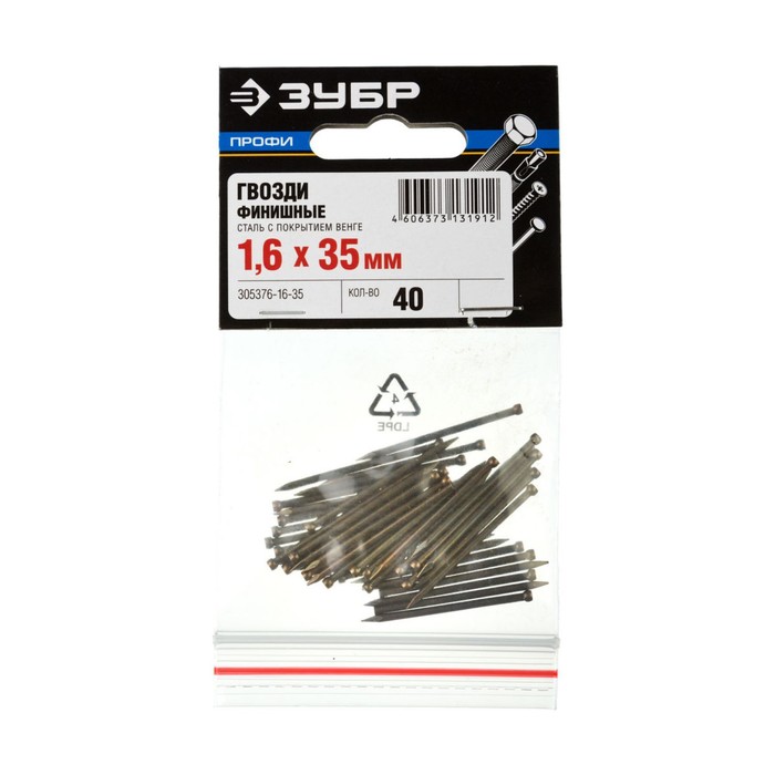 Гвозди финишные, с покрытием венге, 35 х 1.6 мм, 40 шт, ЗУБР 305376-16-35