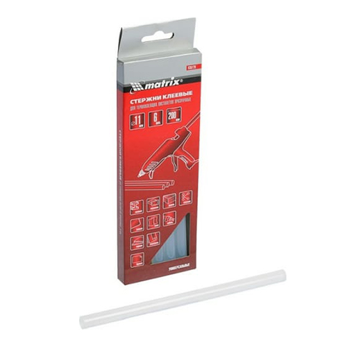 Универсальные клеевые стержни MATRIX предназначены для использования с термоклеящими пистолетами. Применяются для склеивания изделий из дерева, металла, пластика, ткани, кожи, стекла, керамики, бумаги, картона, резины и других материалов. Наилучшая склейка достигается у шершавых, пористых и имеющих высокую адгезию поверхностей. С помощью термоклея возможно создание временной водонепроницаемости при отсутствии сильного давления воды и нагревания (таким образом заделывают трещины в ведрах, садовых лейках, душевых кабинах и др.). Запрещается нагревание с помощью открытого огня и других приспособлений, применение с поверхностями, соприкасающимися с продуктами питания. Во избежание ожогов, запрещено трогать расплавленный клей руками.