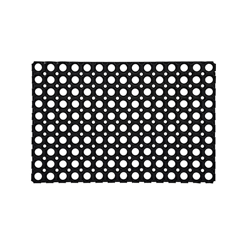 Структура коврика задерживает снег, крупные частицы грязи, препятствует скольжению. Устойчив к антигололедным реагентам и моющим средствам. Размер: 40x60 см. Материал: резина.
