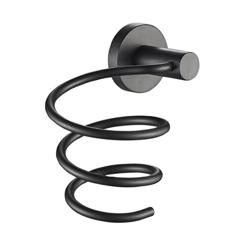 Настенный металлический держатель для фена в форме спирали. Крепление к стене производится при помощи дюбелей, которые входят в комплект.
