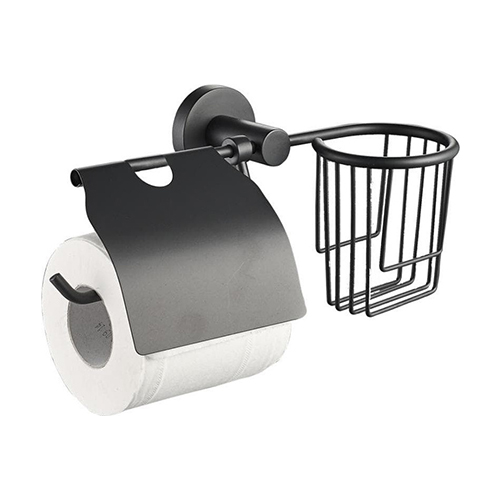 Настенный металлический держатель для туалетной бумаги с крышкой и корзиной. Крепление к стене производится при помощи дюбелей, которые входят в комплект.