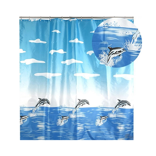 Водонепроницаемая штора из полиэстера пропитанная водоотталкивающим составом. Не прилипает к телу за счет имеющегося утяжелителя в нижней части. Стирать штору можно вручную или в стиральной машине при 40 градусах. В комплект входит 12 колец.