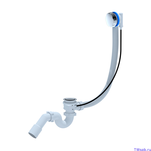 Полуавтоматический перелив для ванны с прямоточным сифоном, длина гибкого переливного патрубка 102 см, подключение к канализации Ø50 мм, материал ручки и сливной решётки: сталь, цвет: хром.