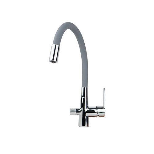 Смеситель для кухни ASUA Armatür на две воды с гибким изливом серый
