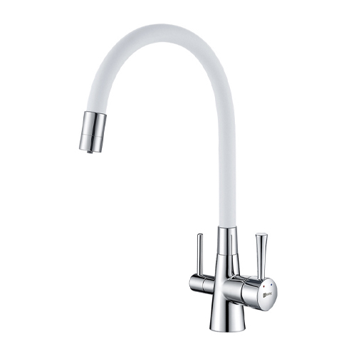 Смеситель Lemark Comfort LM3075C-White для кухонной мойки, с подключением к фильтру питьевой воды, хром/белый