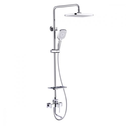 - Аксессуары в комплекте (верхняя душевая лейка «Тропический дождь», 3-функциональная лейка, регулируемое по высоте крепление для лейки, полочка для душевых принадлежностей, душевой шланг 1,5 м)